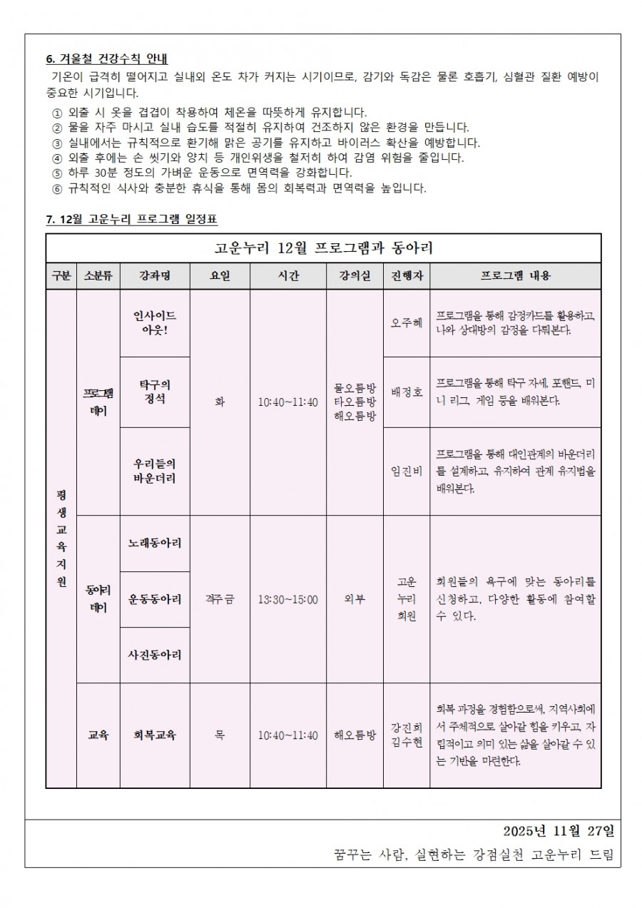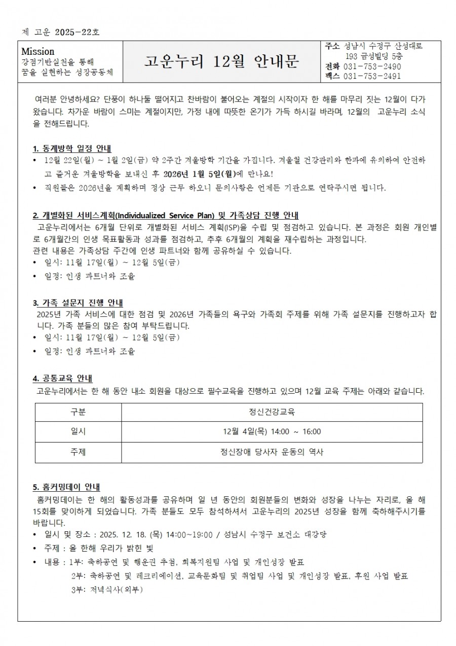 9월의 고운누리 소식과 일정을 안내해 드립니다.