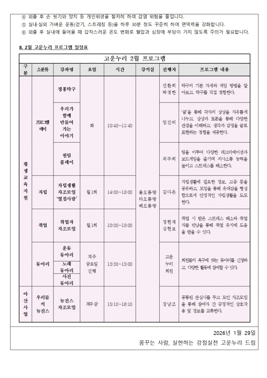 2월 고운누리 안내