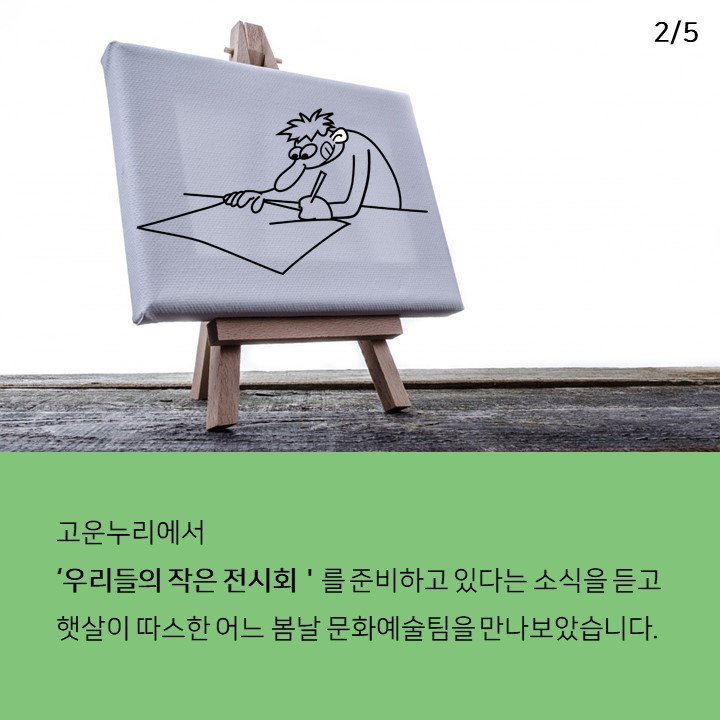 고운누리에서 ‘우리들의 작은 전시회’를 준비하고 있다는 소식을 듣고 햇살이 따스한 어느 봄날 문화예술팀을 만나보았습니다.