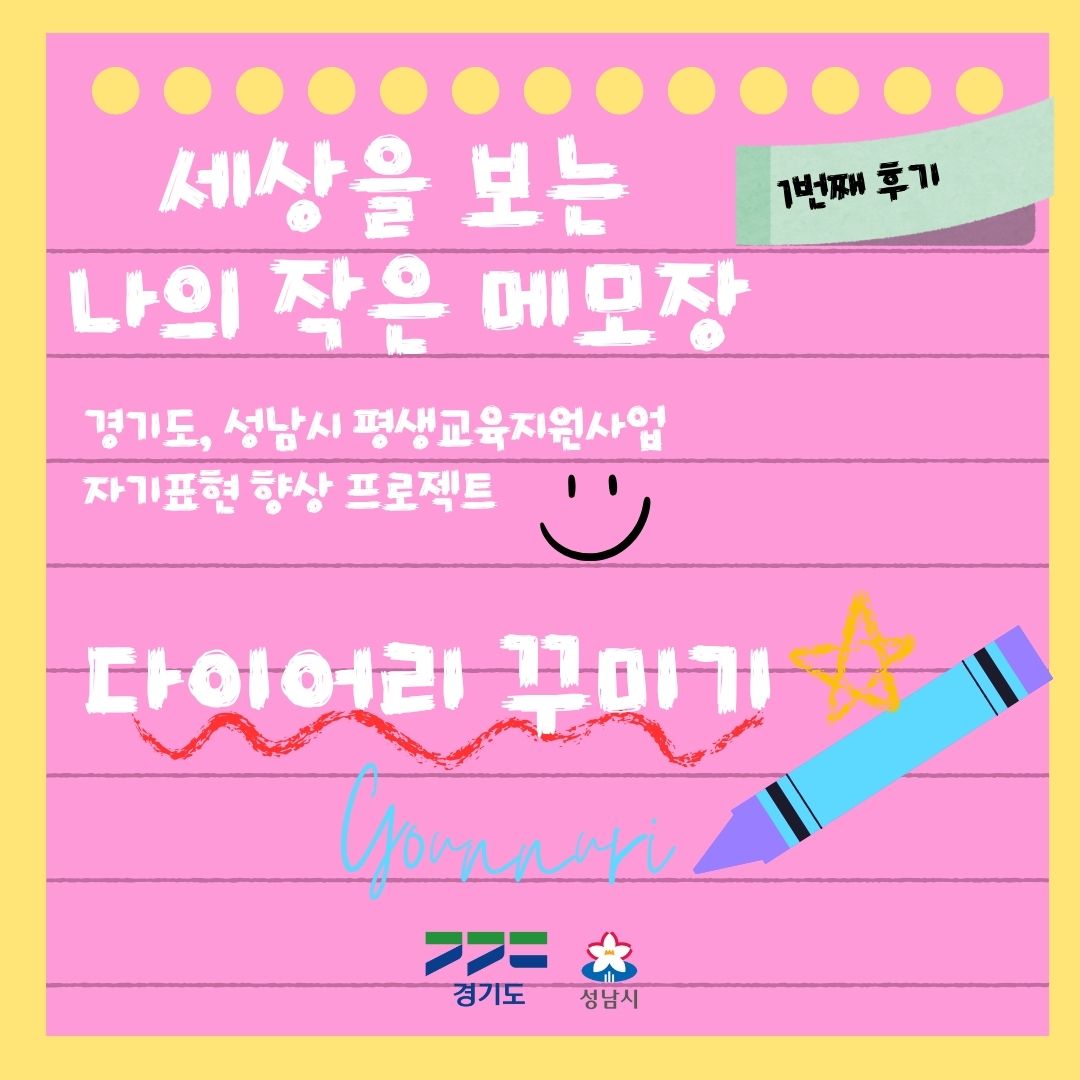 1번째 후기 - 경기도, 성남시 평생교육 지원사업 :자기 표현 향상 프로젝트 세상을 보는 나의 작은 메모장 …