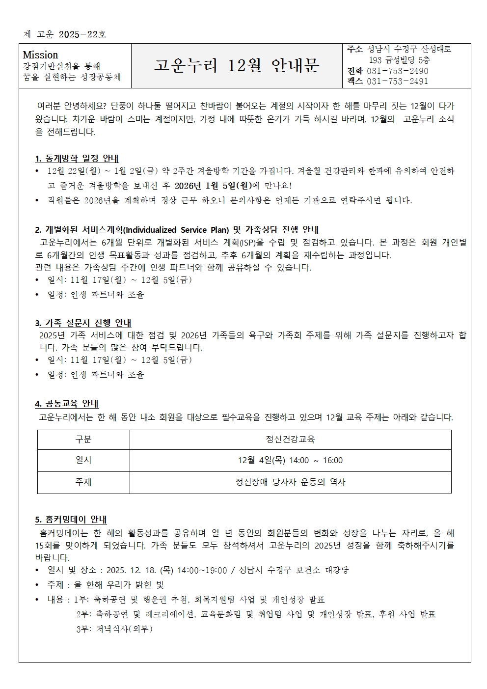 고운누리 소식지