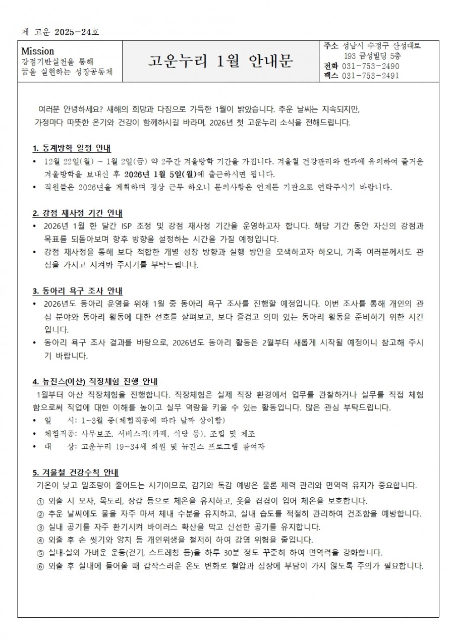 2025년 고운누리 1월 소식지
