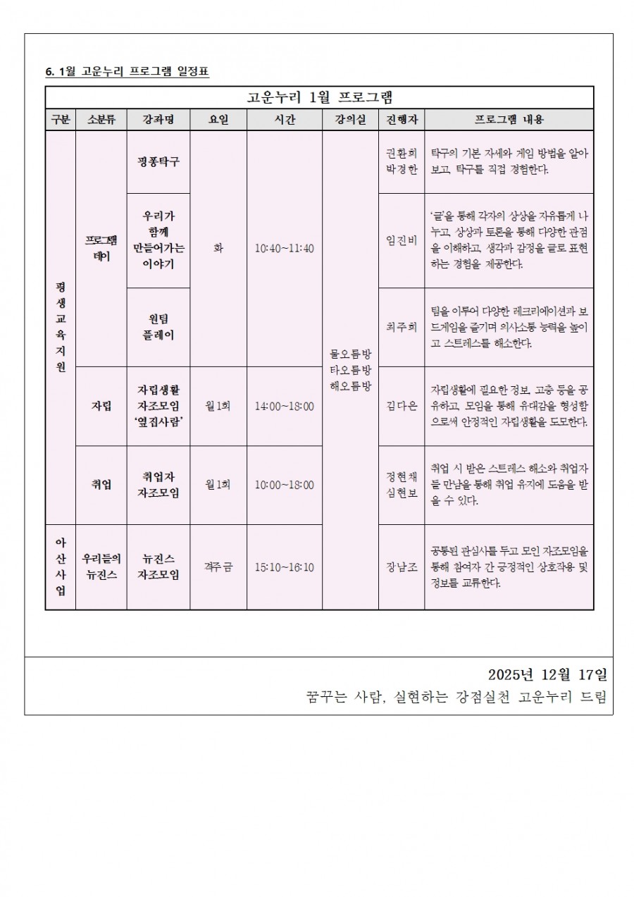 2026년 고운누리 1월 안내문